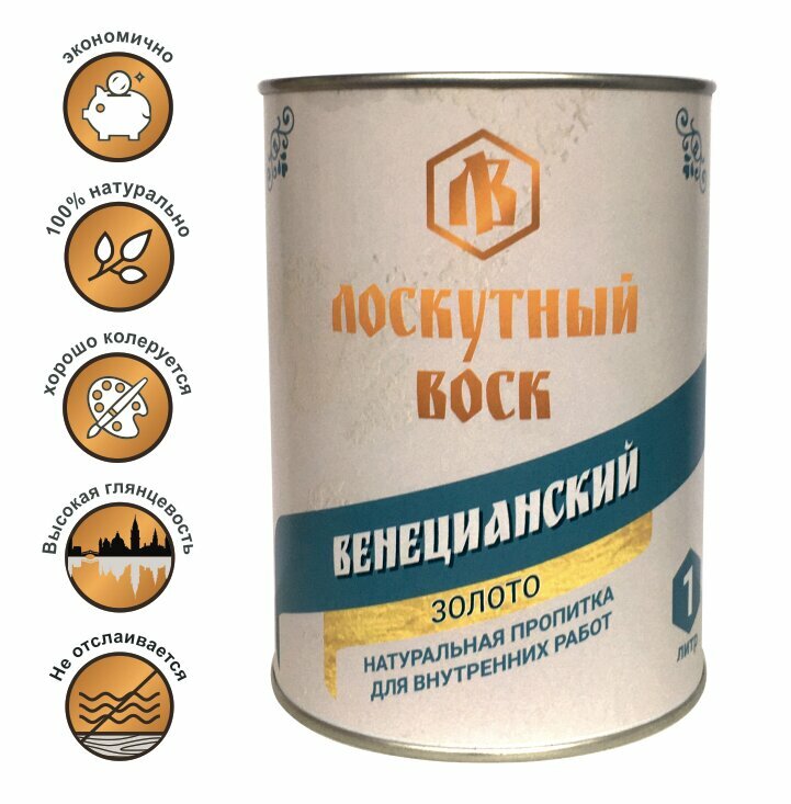 Купить Влаго-биозащитная пропитка "Веницианский лоскутный воск", золото, 1л, железная банка