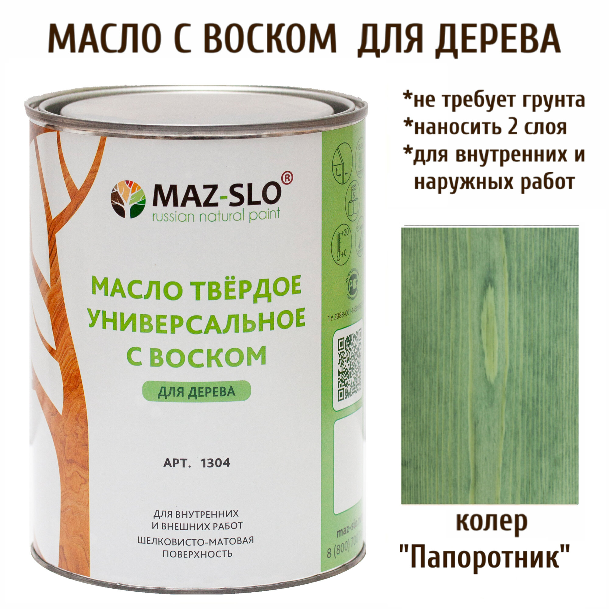 Масло твердое универсальное с воском Maz-slo цвет Пихта