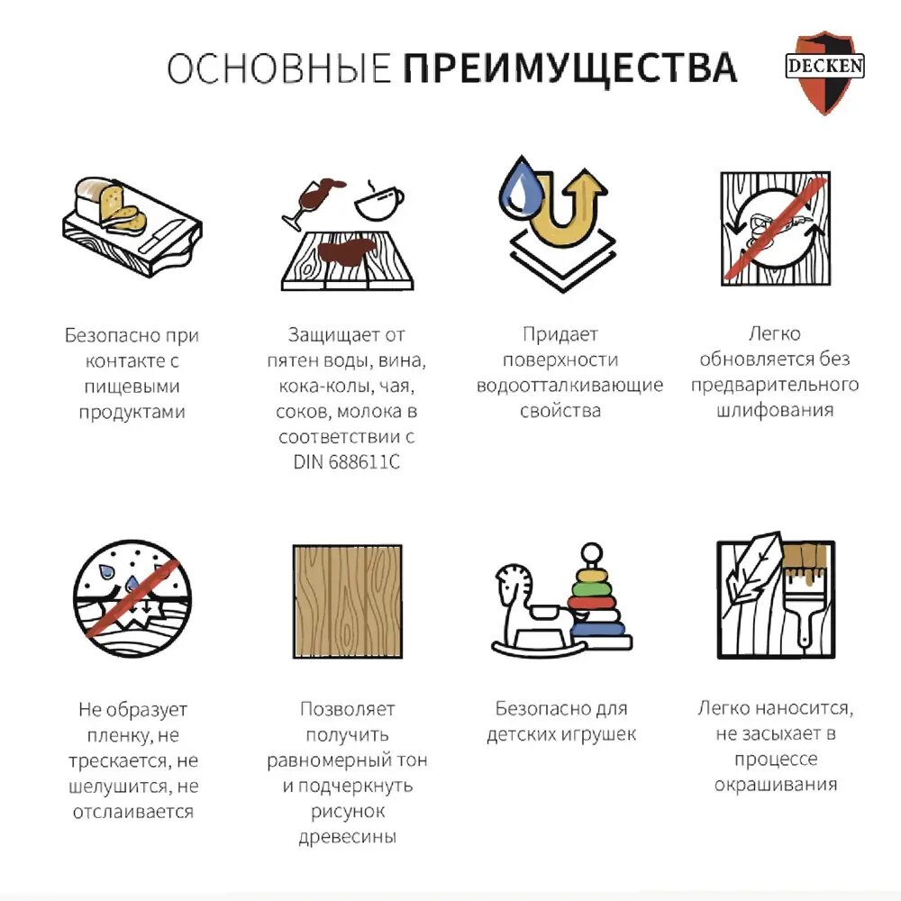 СохранитьМасло для рабочих поверхностей Decken WorkTop Oil 0,125 л палисандр интересное: