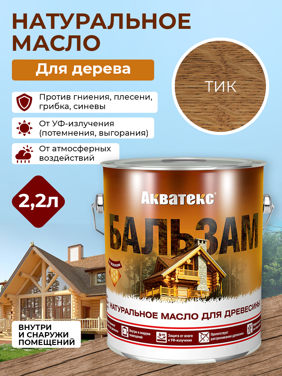 Натуральное Масло Акватекс Бальзам 2.2л Тик для Древесины для Внутренних и Наружных Работ.