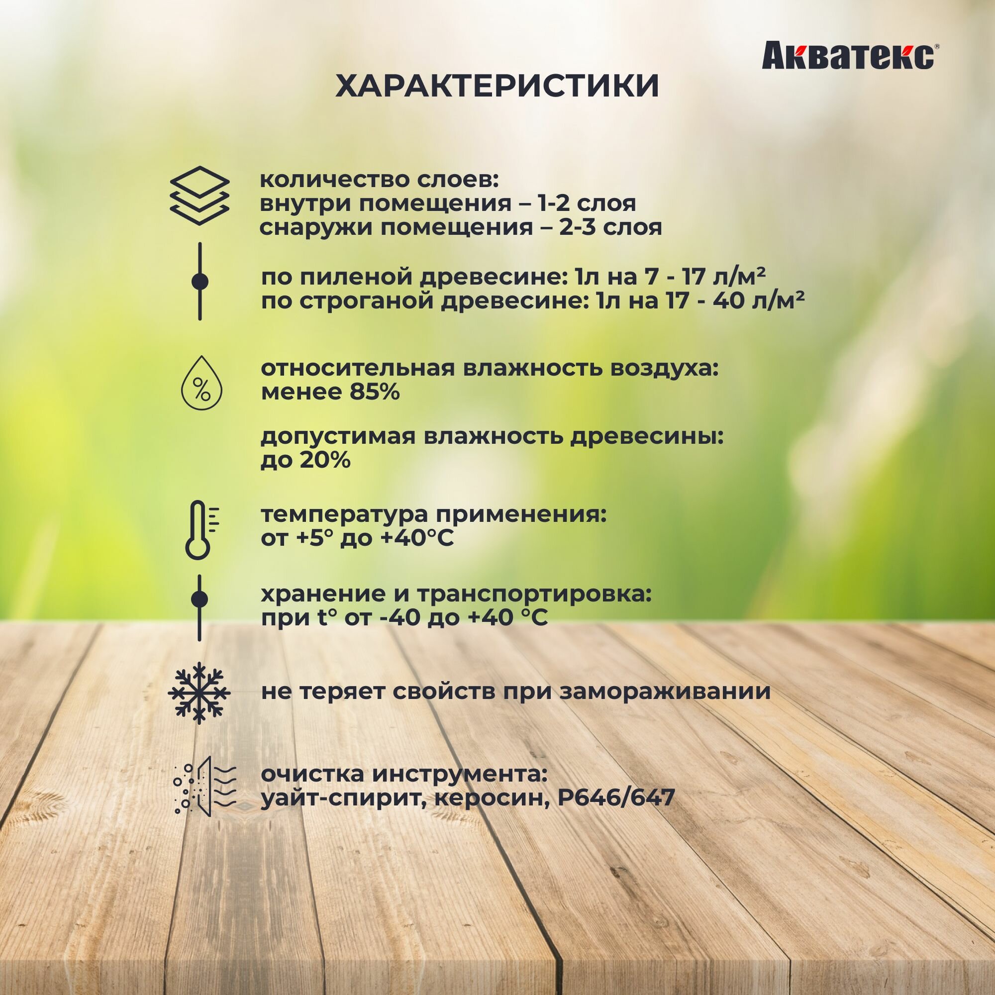 | Особенности | УФ-защита, водоотталкивающее, защита от плесени, износостойкое, морозостойкое, тонирующее |