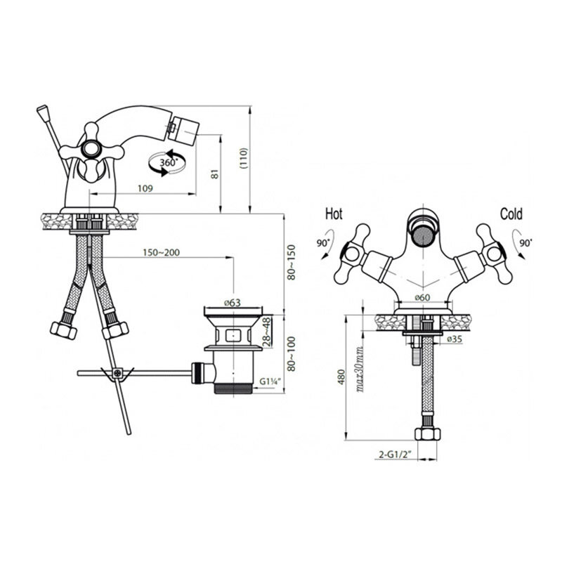 Смеситель Cezares Retro RETRO-C-BS1-03 для биде с донным клапаном
