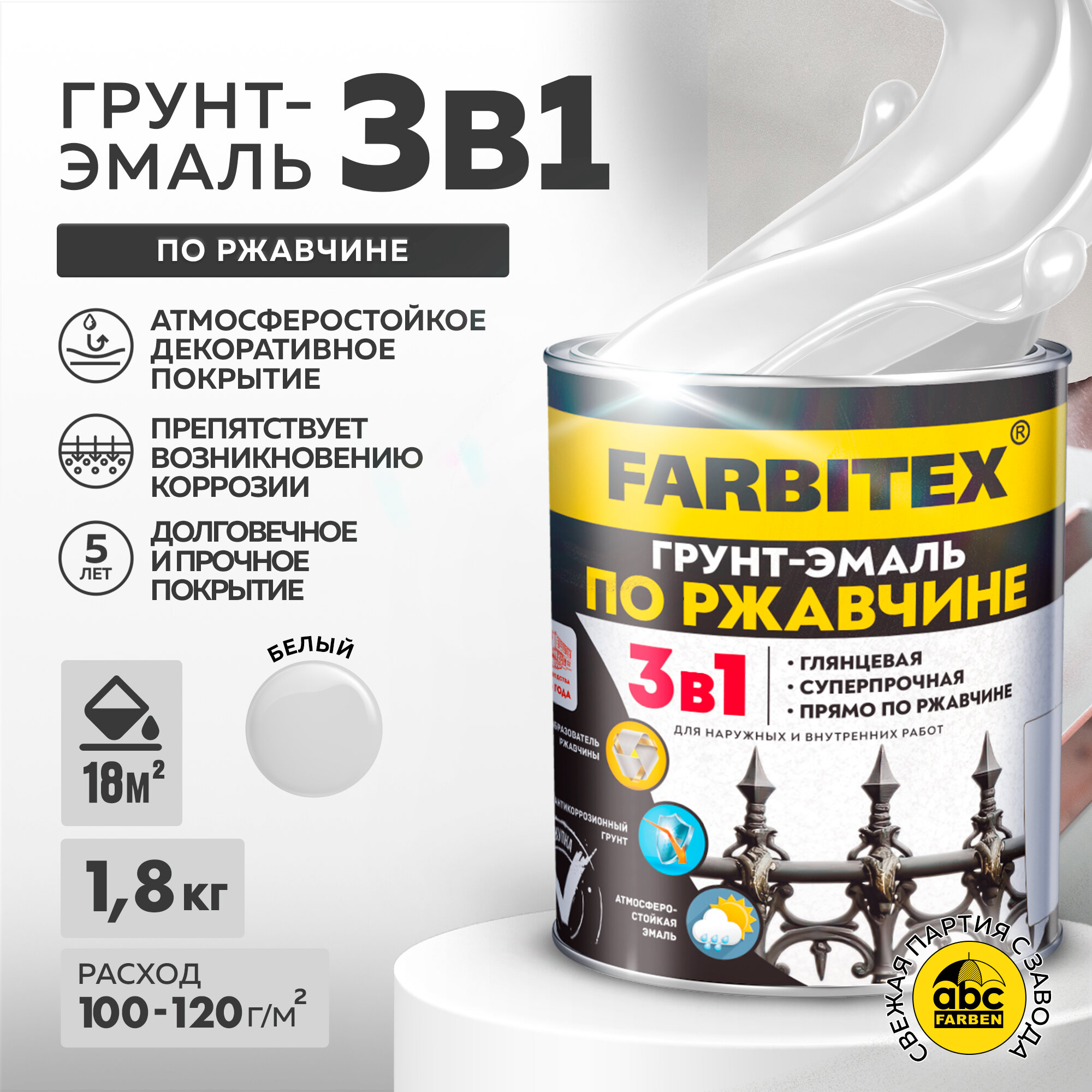 Грунт-эмаль по ржавчине 3в1 FARBITEX, белый, 1,8 кг