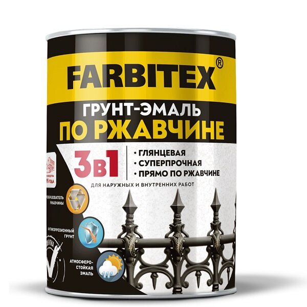 Грунт-эмаль по ржавчине 3в1 FARBITEX, черный, 5 кг