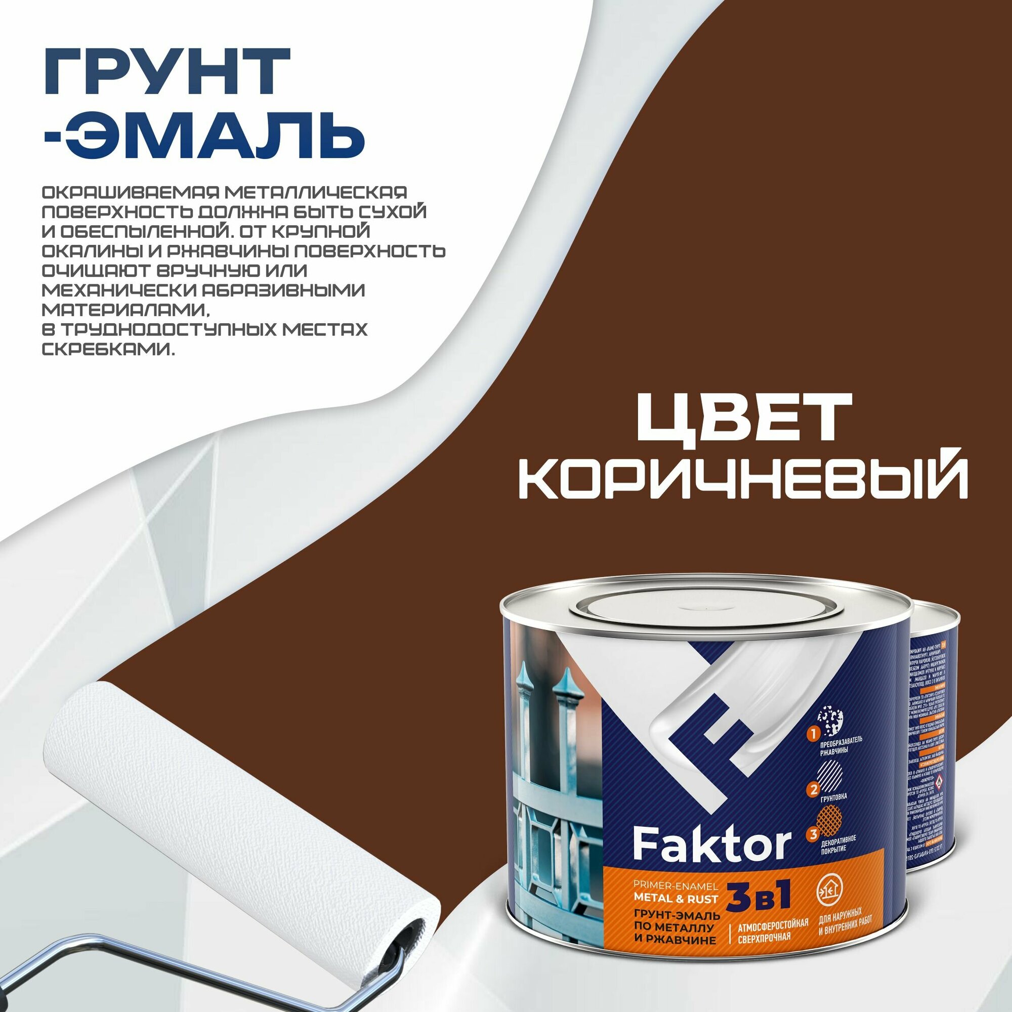 Грунт-эмаль 3 в 1 по ржавчине, сверхпрочная, коричневый, 1.9 кг интересное: