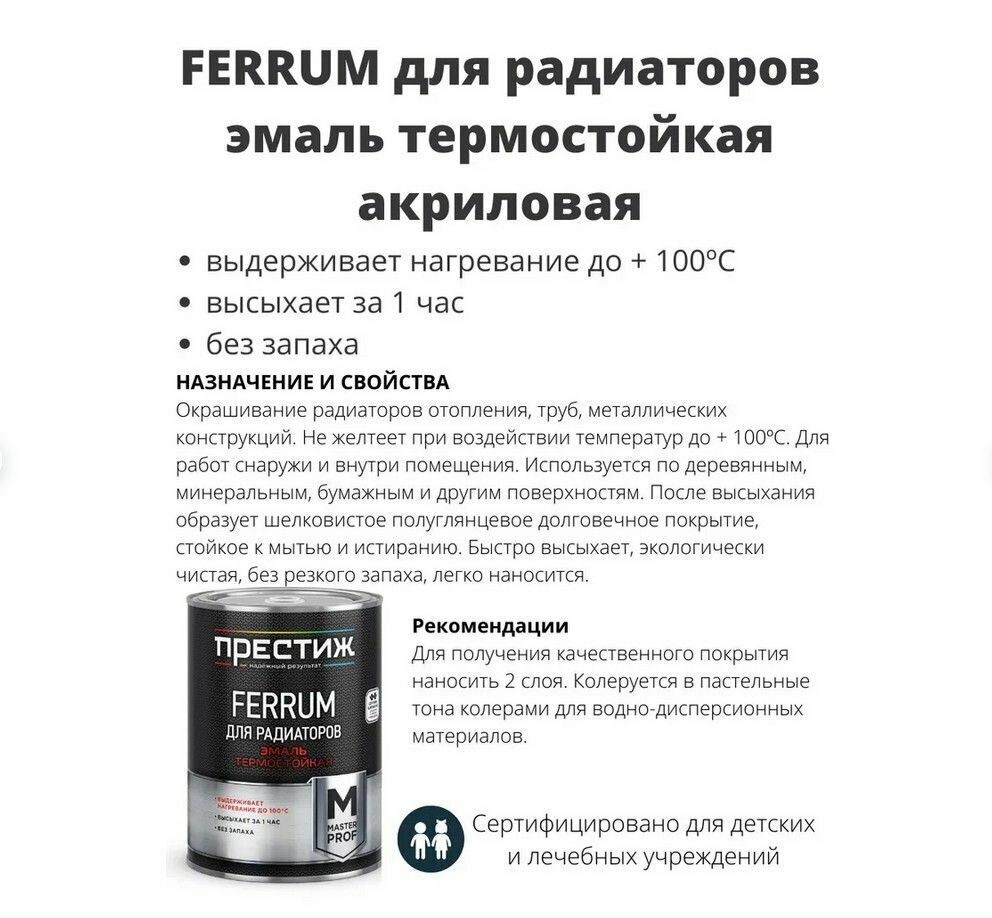 СохранитьЭмаль акрил 1,9кг д/рад (белый) FERRUM 150° престиж интересное: