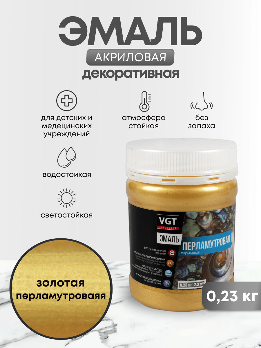 СохранитьЭмаль акриловая перламутровая универсальная ВД-АК-1179 VGT (0,23кг) золото интересное: