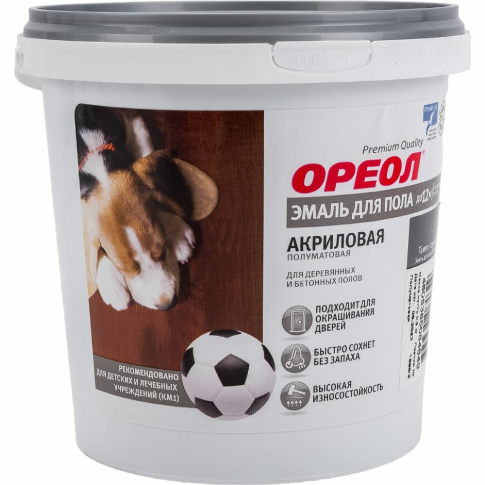 Эмаль Ореол, для пола, быстросохнущая, акриловая, полуматовая, темно-серая, 0.9 кг