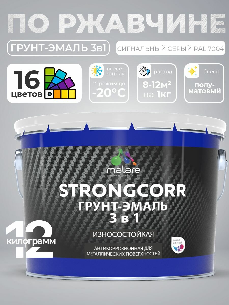 Купить Грунт-Эмаль Malare 3 в 1 для металлических поверхностей, краска для металла, износостойкая, полуматовая, RAL 7004, сигнальный серый, 12.4 кг.