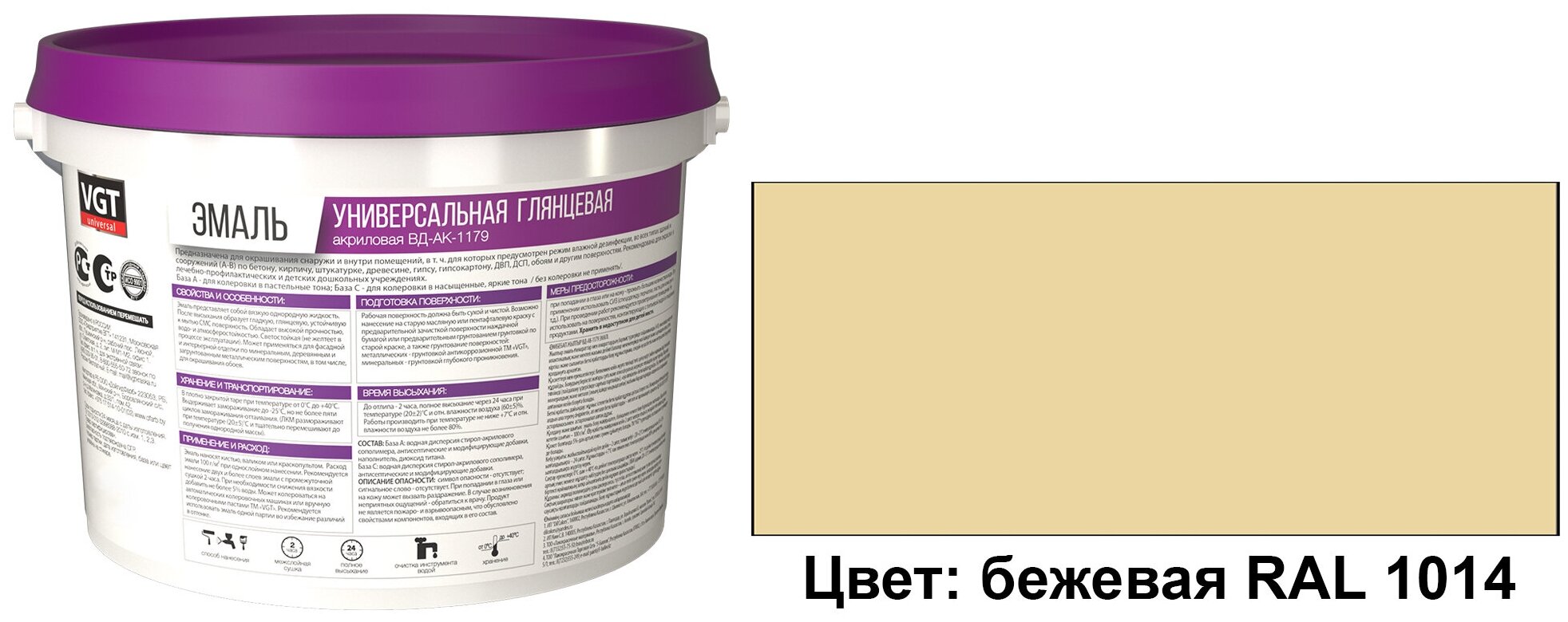 Купить Эмаль универсальная ВД-АК-1179 VGT цветная глянцевая (10кг) бежевый RAL 1014