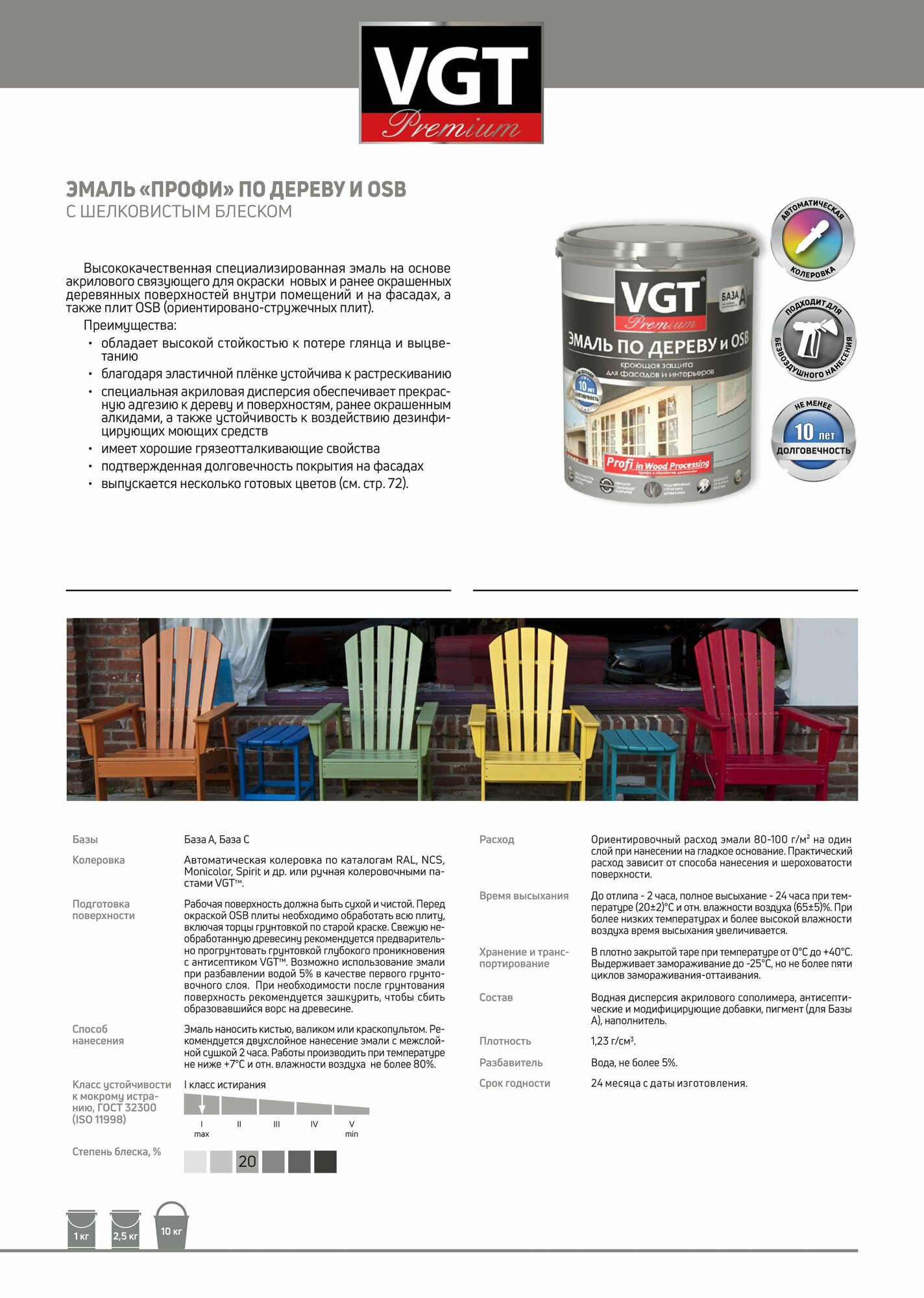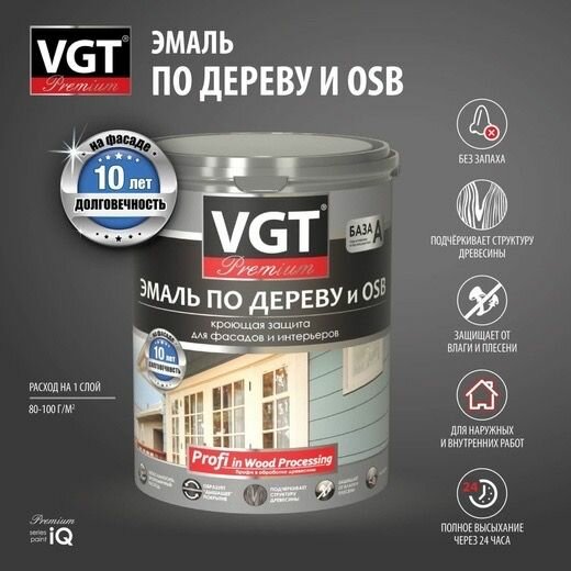 Эмаль по дереву и OSB VGT Premium полуматовая (10кг) А (белая и под колеровку)