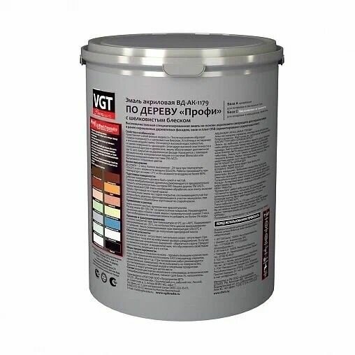VGT PREMIUM ВД-АК-1179 профи эмаль ПО дереву акриловая, полуматовая, база А, супербелая (10кг)