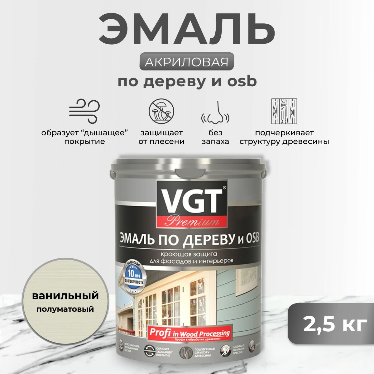 Эмаль по дереву и OSB VGT Premium, 2,5 кг, ванильная