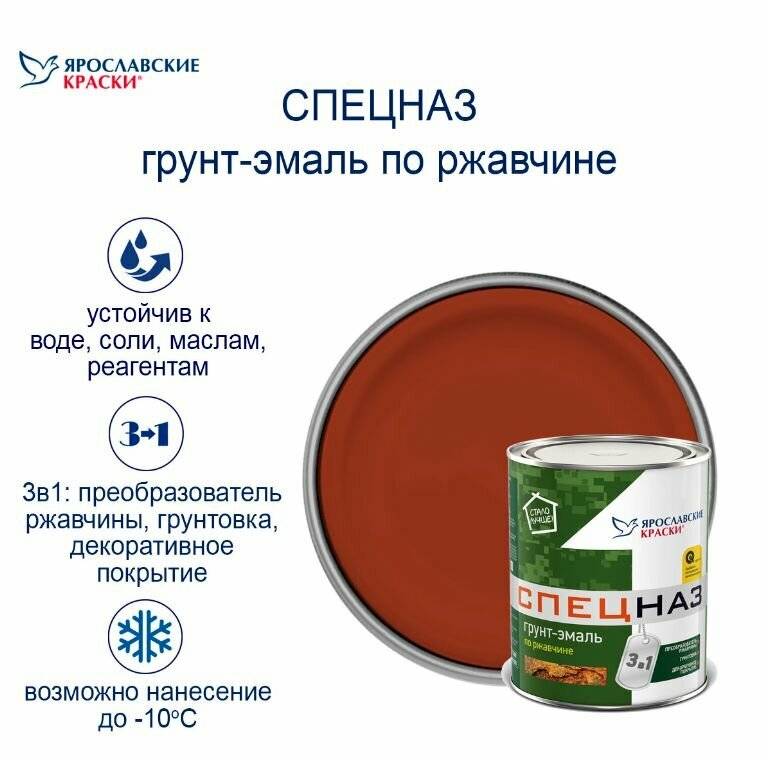 Грунт-эмаль по ржавчине 3 в 1 спецназ ярославские краски красно-коричневый 0,8 кг 100515.4