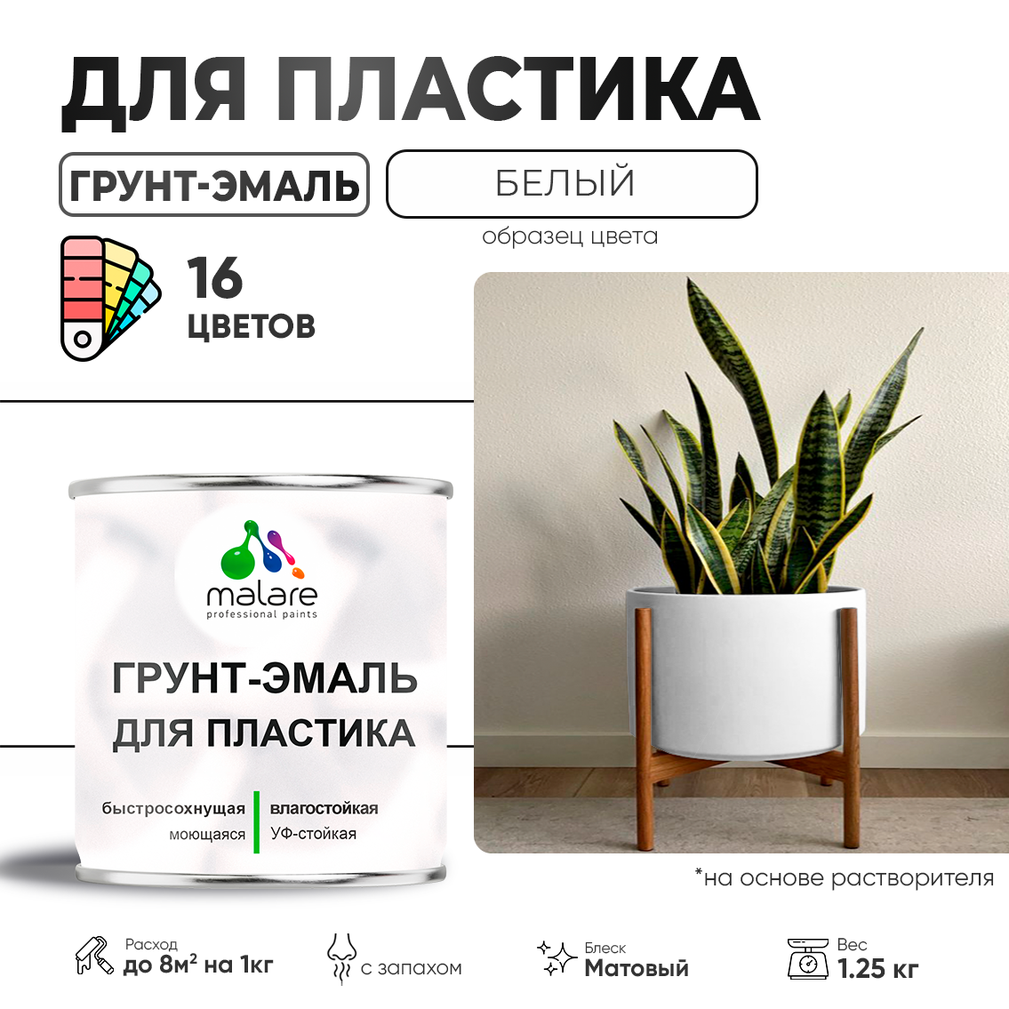 Купить Грунт-Эмаль, Краска Malare 3 в 1 для пластика, окон и подоконников, сайдинга, быстросохнущая, матовый, белый, 1,25 кг.