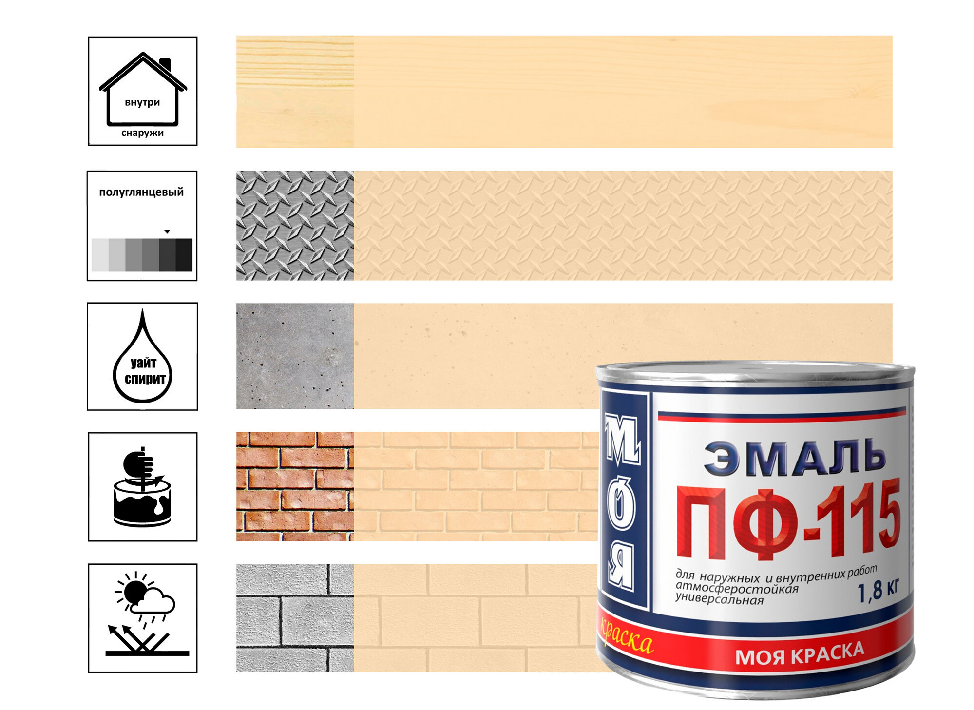 Ниже Вы можете прочитать отзывы на Эмаль "Моя краска" ПФ-115, бежевый цвет, 1,8 кг, ознакомится с подробными характеристиками, посмотреть интересные обзоры и фотографии на Эмаль "Моя краска" ПФ-115, бежевый цвет, 1,8 кг.