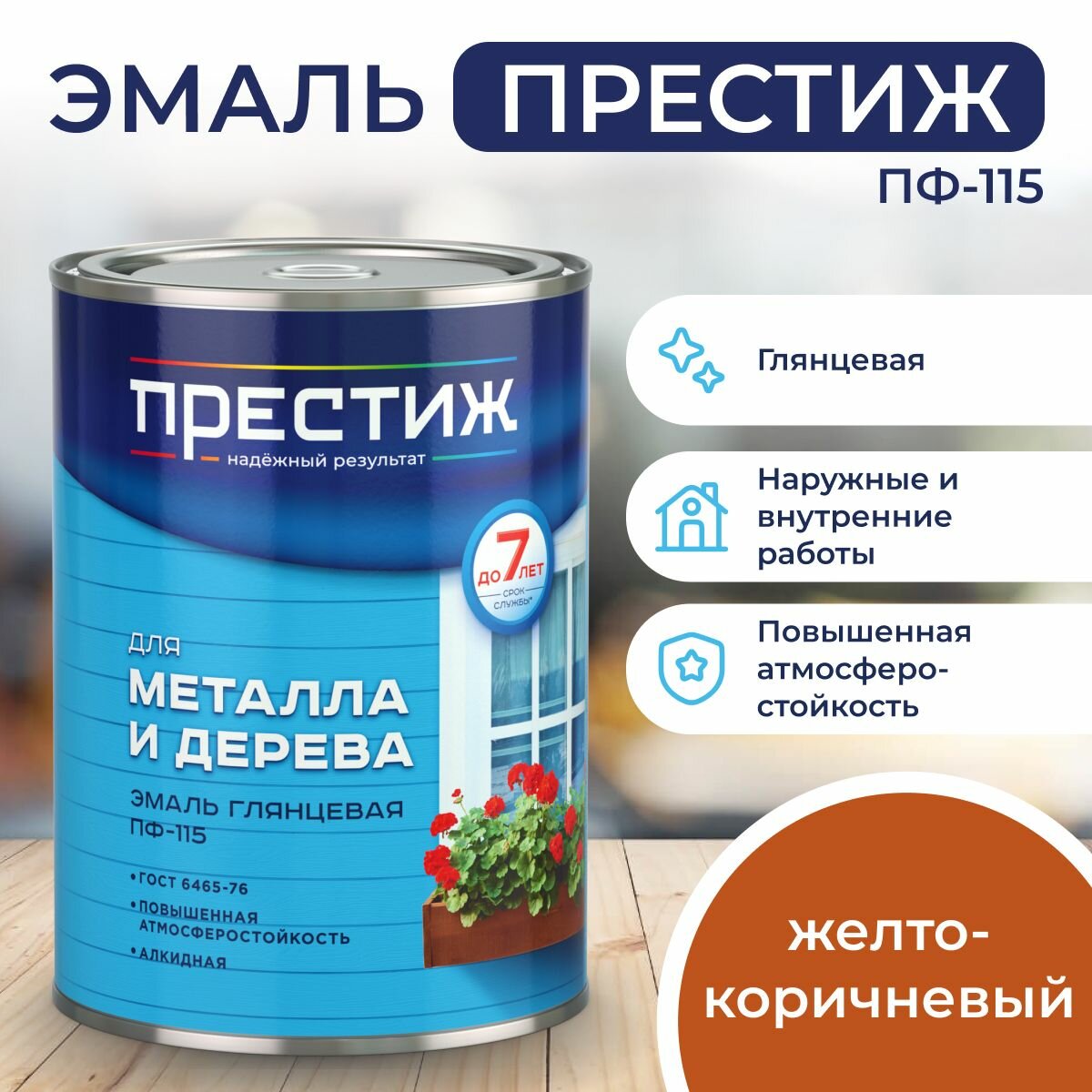 Эмаль ПФ-115 для металла и дерева Престиж, алкидная, глянцевая, 0,9 кг, желто-коричневая