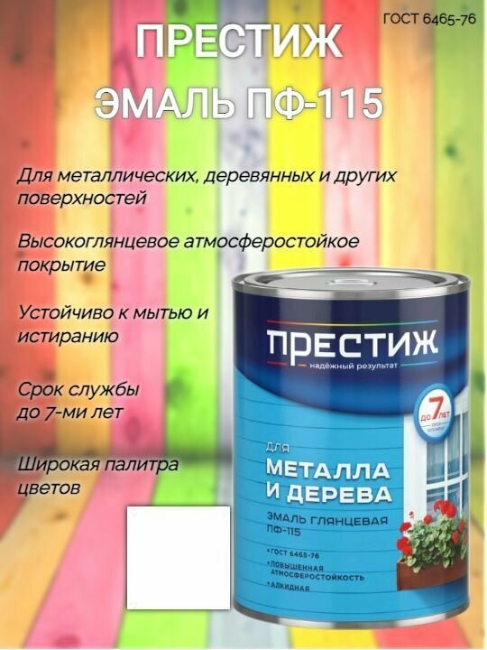 Эмаль ПФ-115 для металла и дерева Престиж, алкидная, глянцевая, 0,9 кг, белая, 1шт, металлическая банка