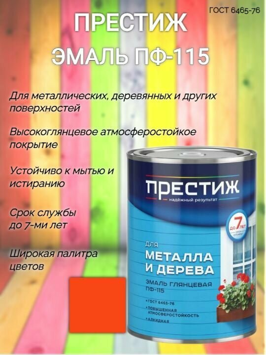 Эмаль ПФ-115 для металла и дерева Престиж, алкидная, глянцевая, 0,9 кг, оранжевая, 1шт, металлическая банка