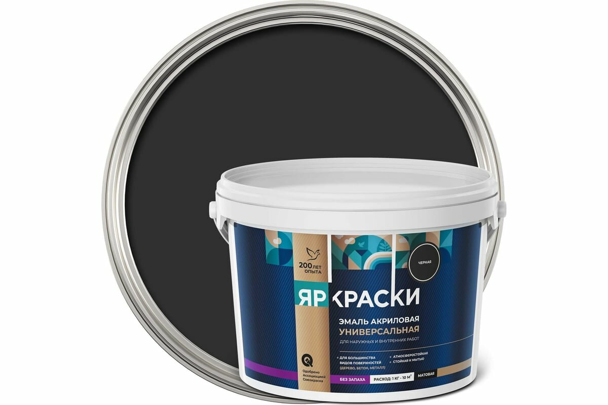 Эмаль акриловая универсальная яркраски черная матовая без запаха, 2.5 кг