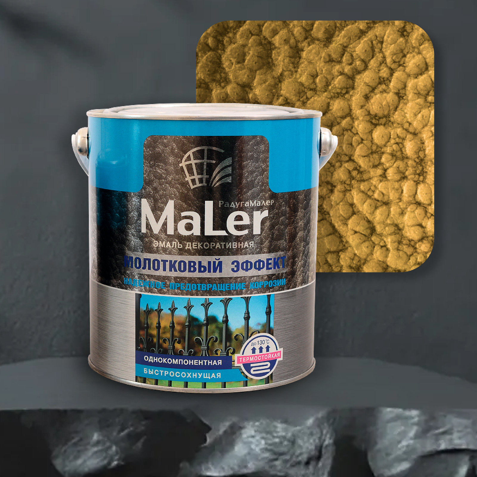 Краска по металлу 2,5л молотковая золотистая