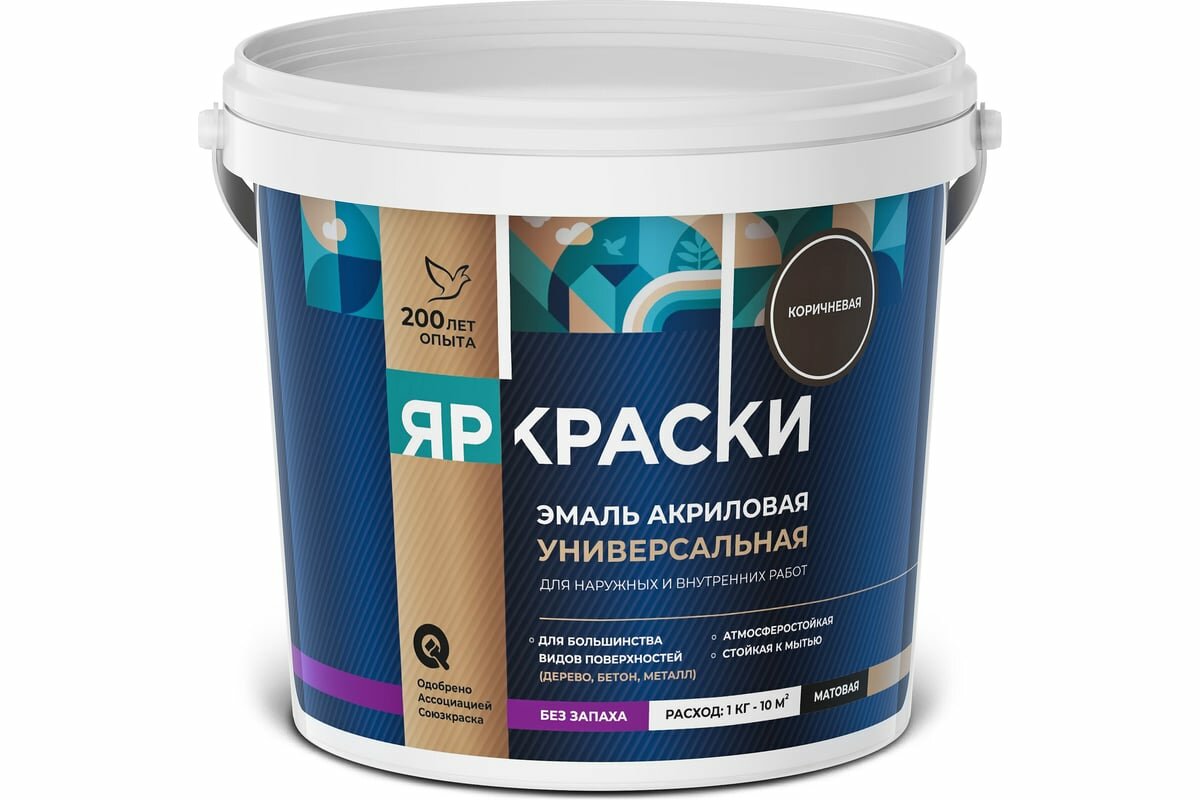 Эмаль ярославские краски универсальная акриловая коричневая, ведро 0,9 кг