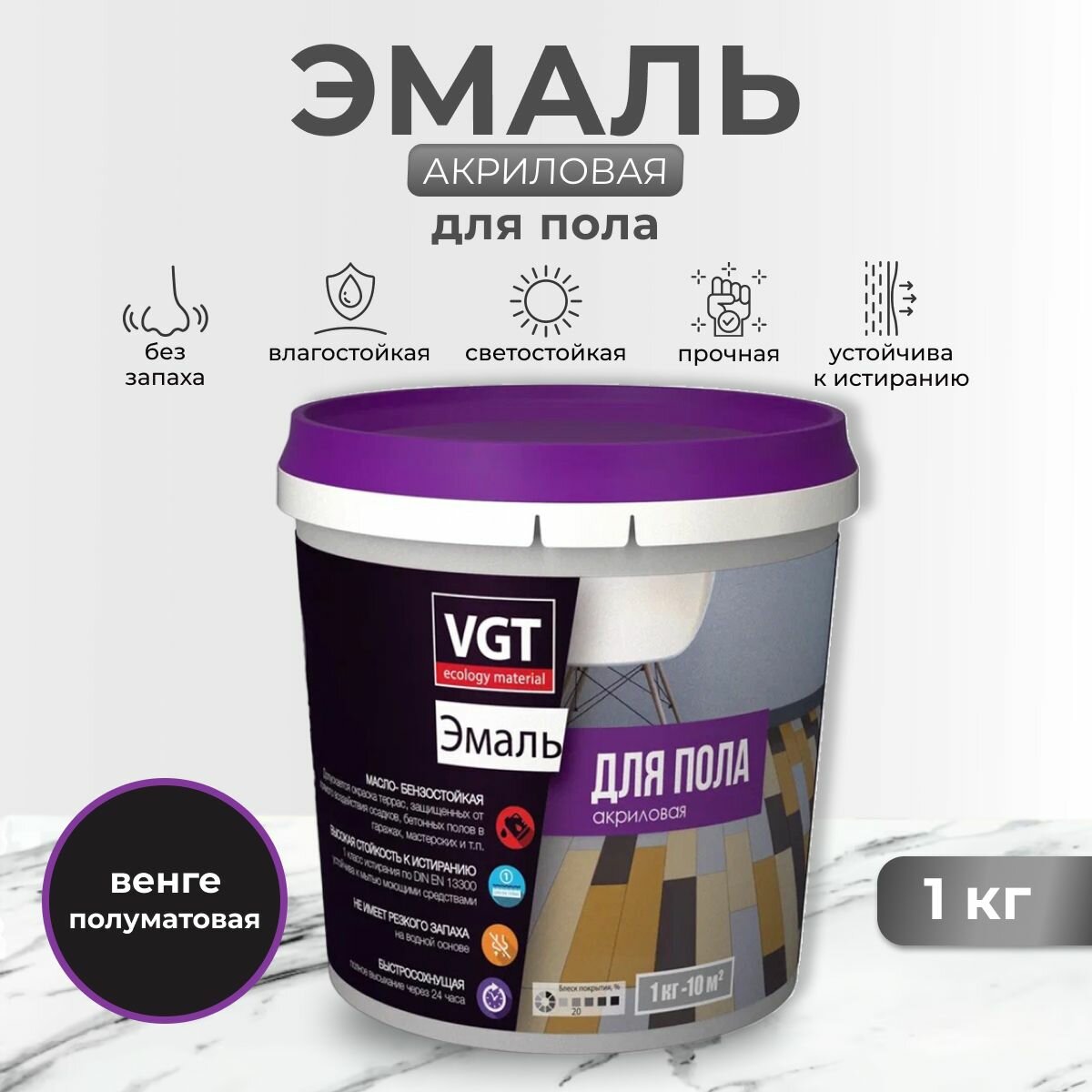 Купить Эмаль акриловая для пола ВД-АК-1179 VGT Профи полуматовая (1кг) венге
