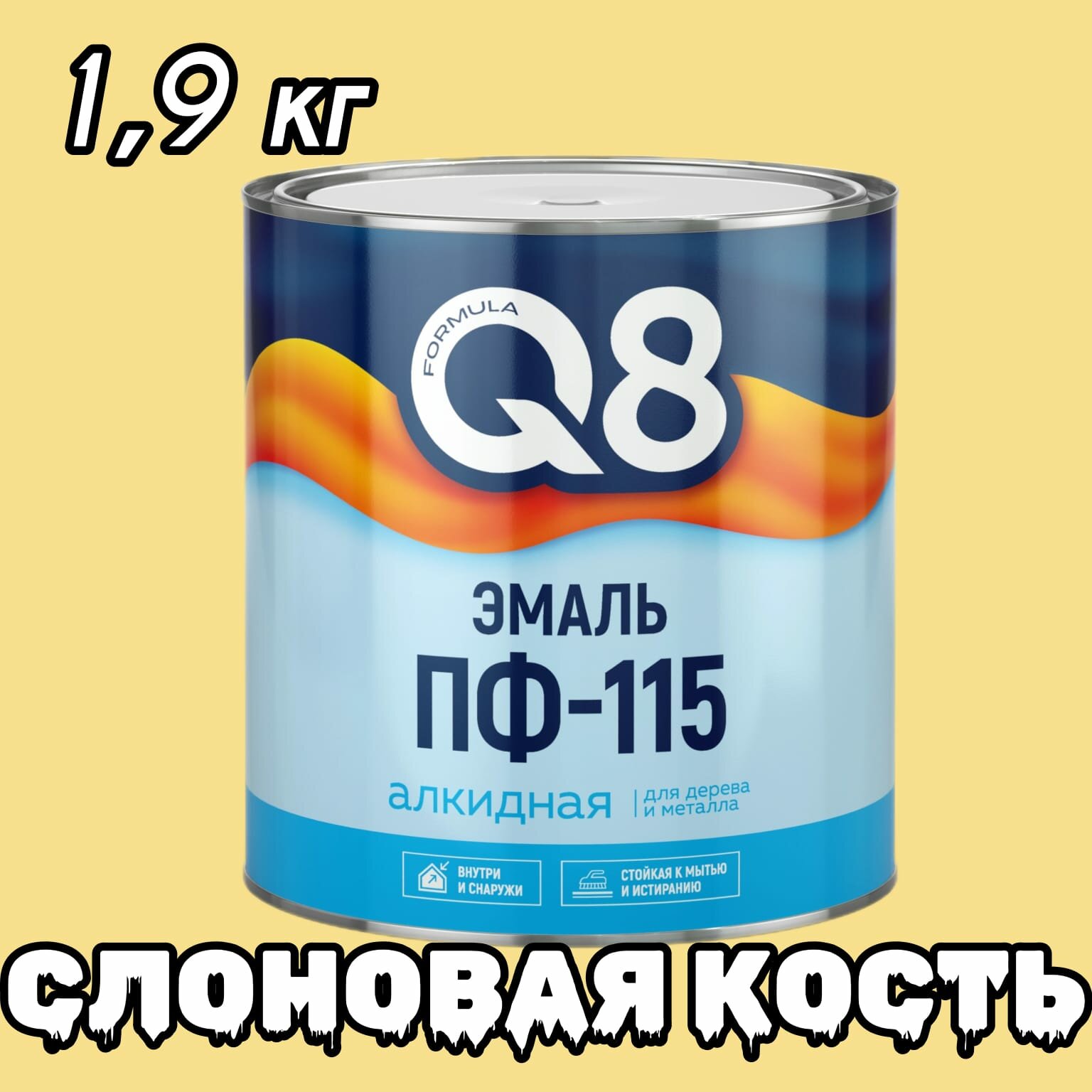 Эмаль ПФ-115 алкидная Formula Q8, глянцевая, 1,9 кг, слоновая кость, 1шт, металлическая банка