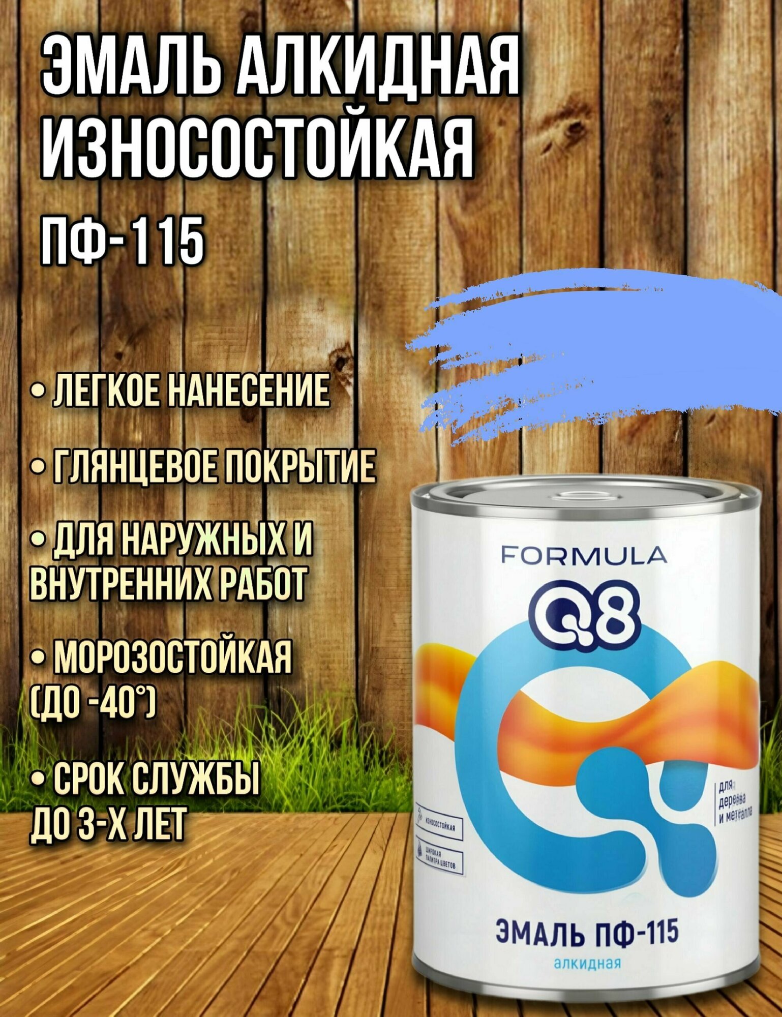 Эмаль ПФ-115 алкидная Formula Q8, глянцевая, 0,9 кг, голубая, 1шт, металлическая банка