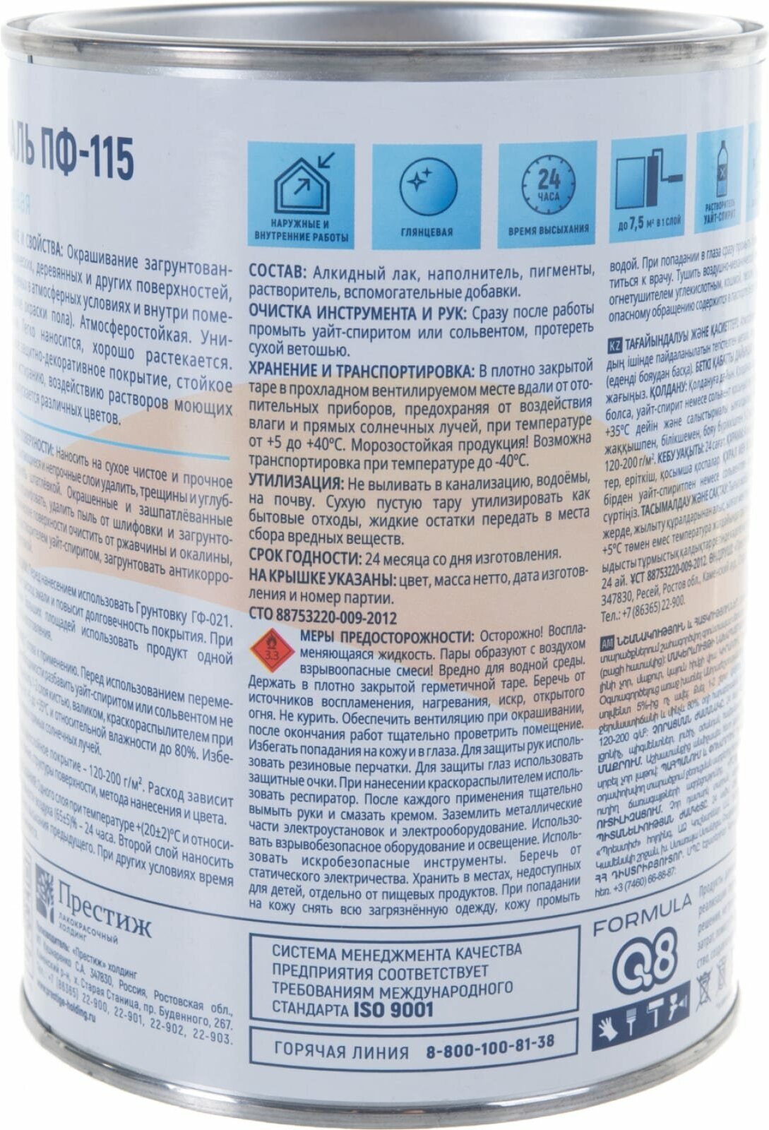Эмаль ПФ-115 алкидная Formula Q8, глянцевая, 0,9 кг, белая, 1шт, металлическая банка