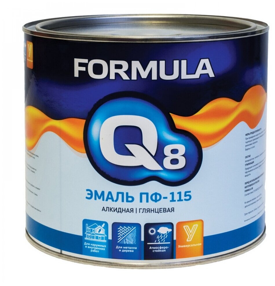 Эмаль ПФ-115 алкидная Formula Q8, глянцевая, 1,9 кг, белая, 1шт, металлическая банка