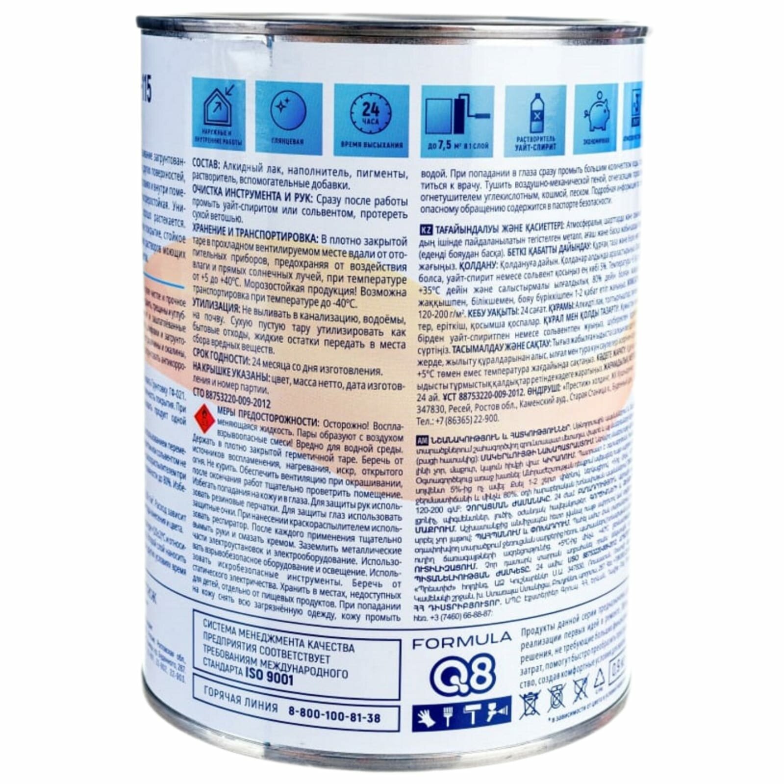Эмаль ПФ-115 алкидная Formula Q8, глянцевая, 0,9 кг, слоновая кость