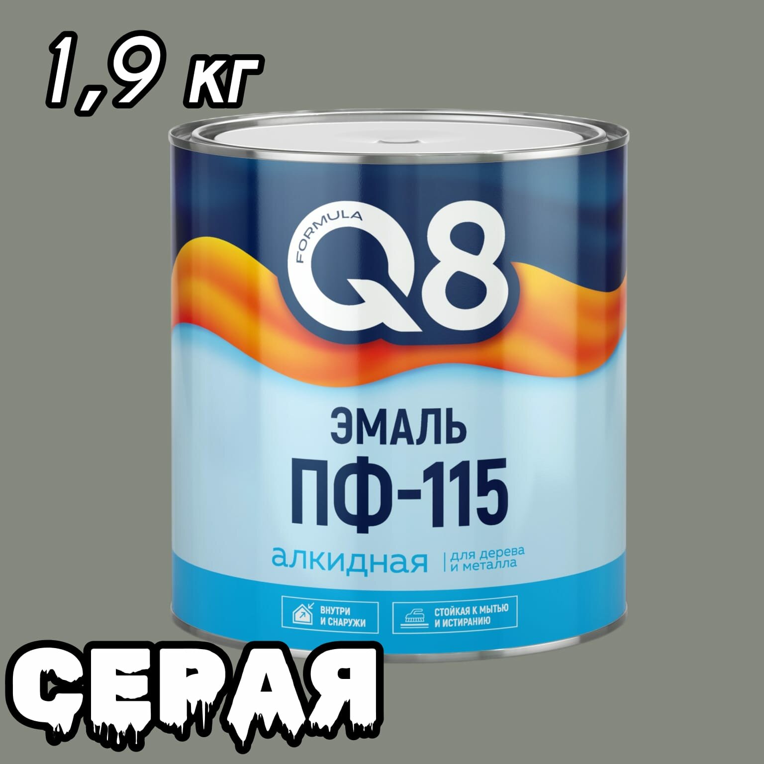 Эмаль ПФ-115 алкидная Formula Q8, глянцевая, 1,9 кг, серая, 1шт, металлическая банка