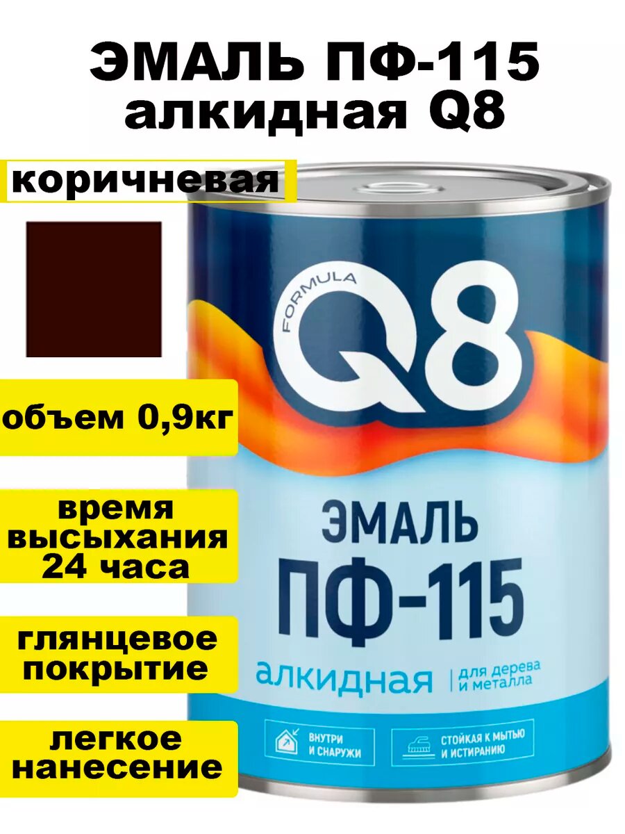 Эмаль ПФ-115 алкидная Formula Q8, глянцевая, 0,9 кг, коричневая, 1шт, металлическая банка