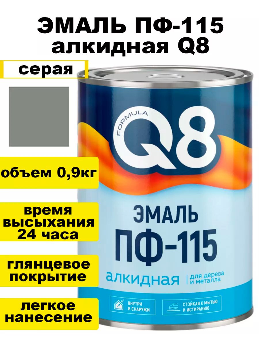 Эмаль ПФ-115 алкидная Formula Q8, глянцевая, 0,9 кг, серая, 1шт, металлическая банка