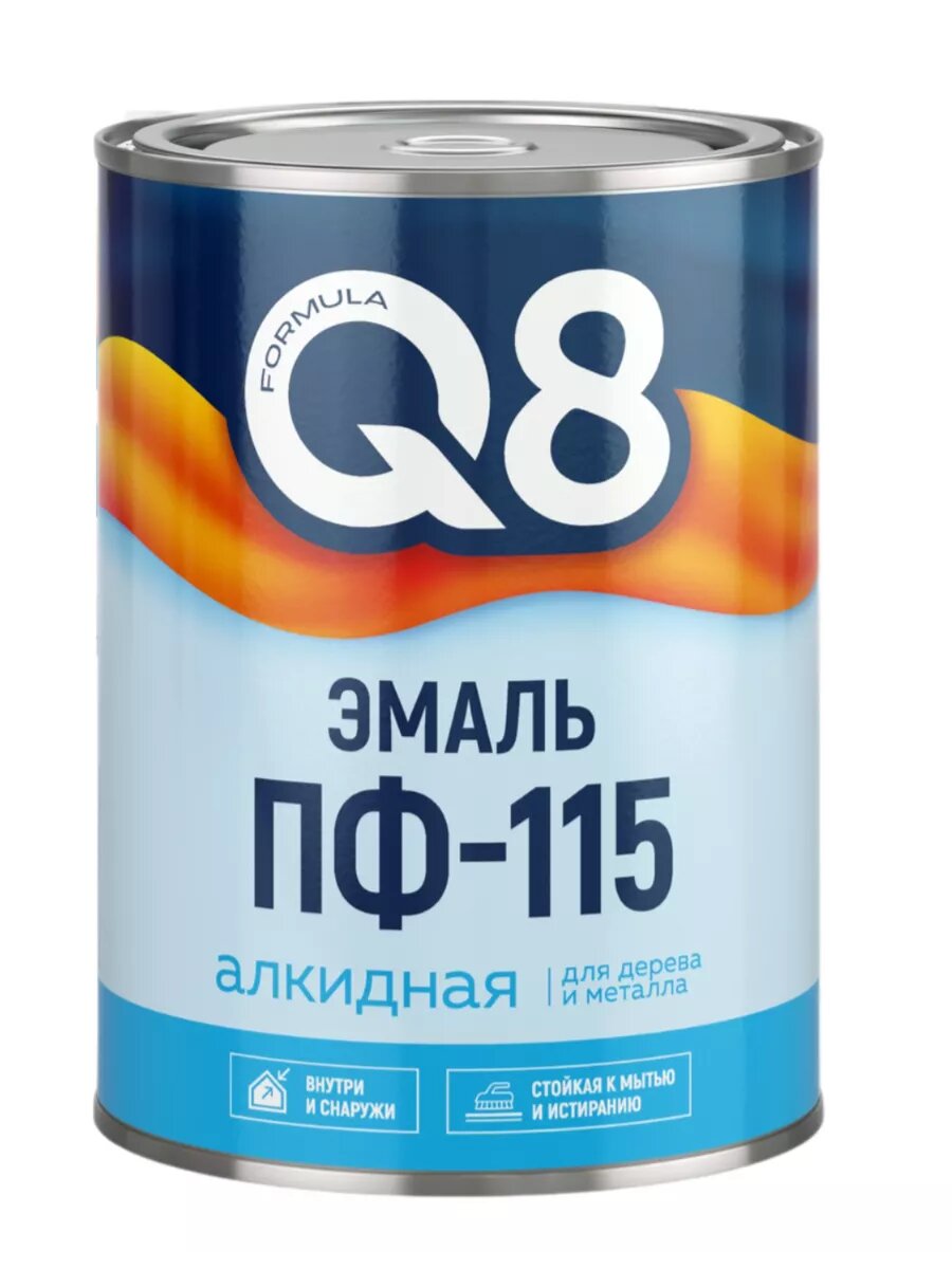 Эмаль ПФ-115 алкидная Formula Q8, глянцевая, 0,9 кг, черная, 1шт, металлическая банка
