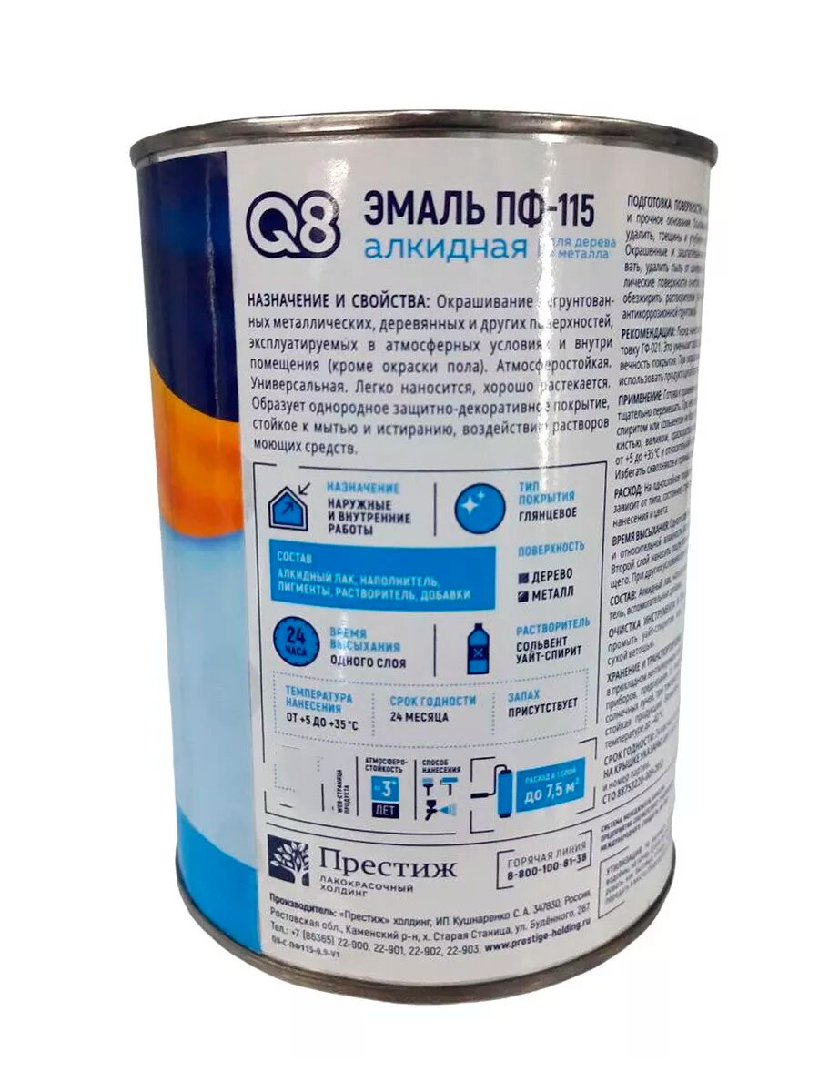 Эмаль ПФ-115 алкидная Formula Q8, глянцевая, 0,9 кг, белая, 1шт, металлическая банка