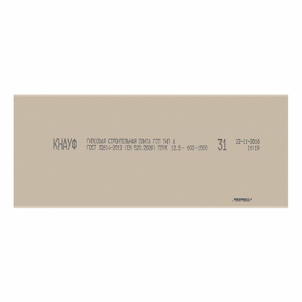 Гипсокартон КНАУФ 1500x600x12,5 см, обычный, Г1, малоформатный, полукруглая кромка