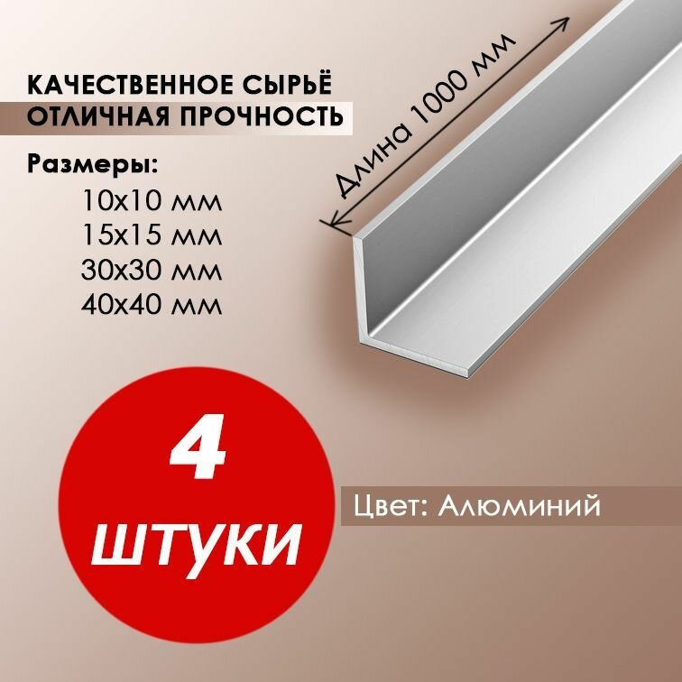 4 штуки Алюминиевый уголок 15х15х1,2 мм, длина 1 метр, общестроительный профиль интересное: