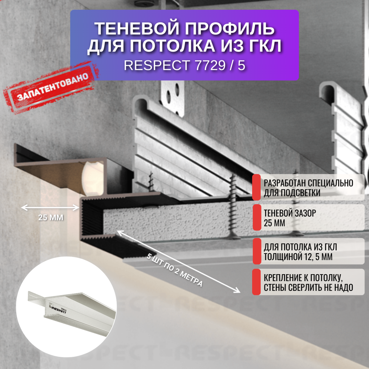 Теневой профиль RESPECT для потолка из ГКЛ толщиной 12,5 мм, белый, 5 шт интересное: