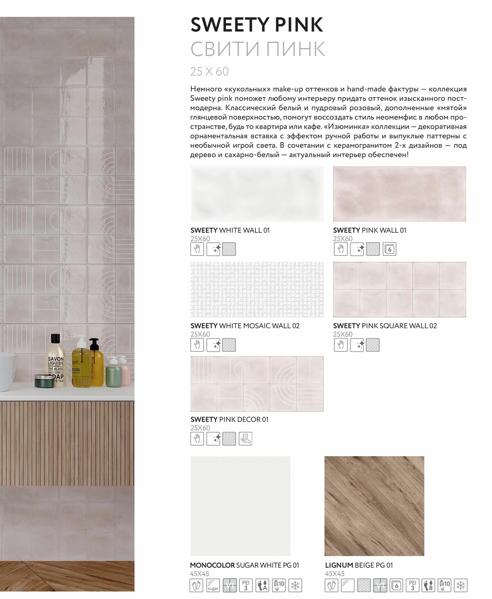 Плитка настенная Sweety pink wall 01 250х600 (1.2 м2 / 8 шт)