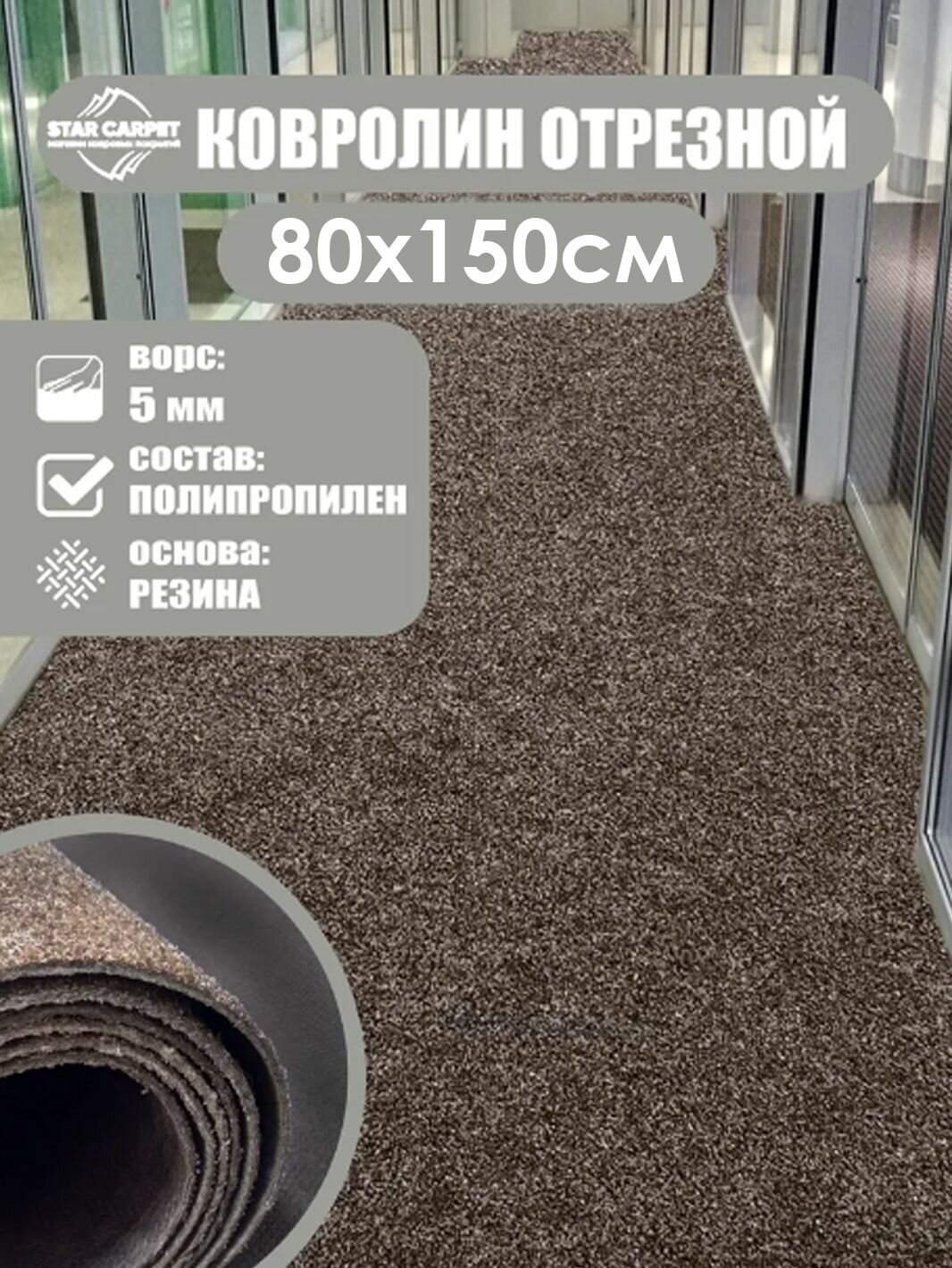 Ковролин на пол метражом 0,8х1,5 м. для офиса и дома, коричневый интересное: