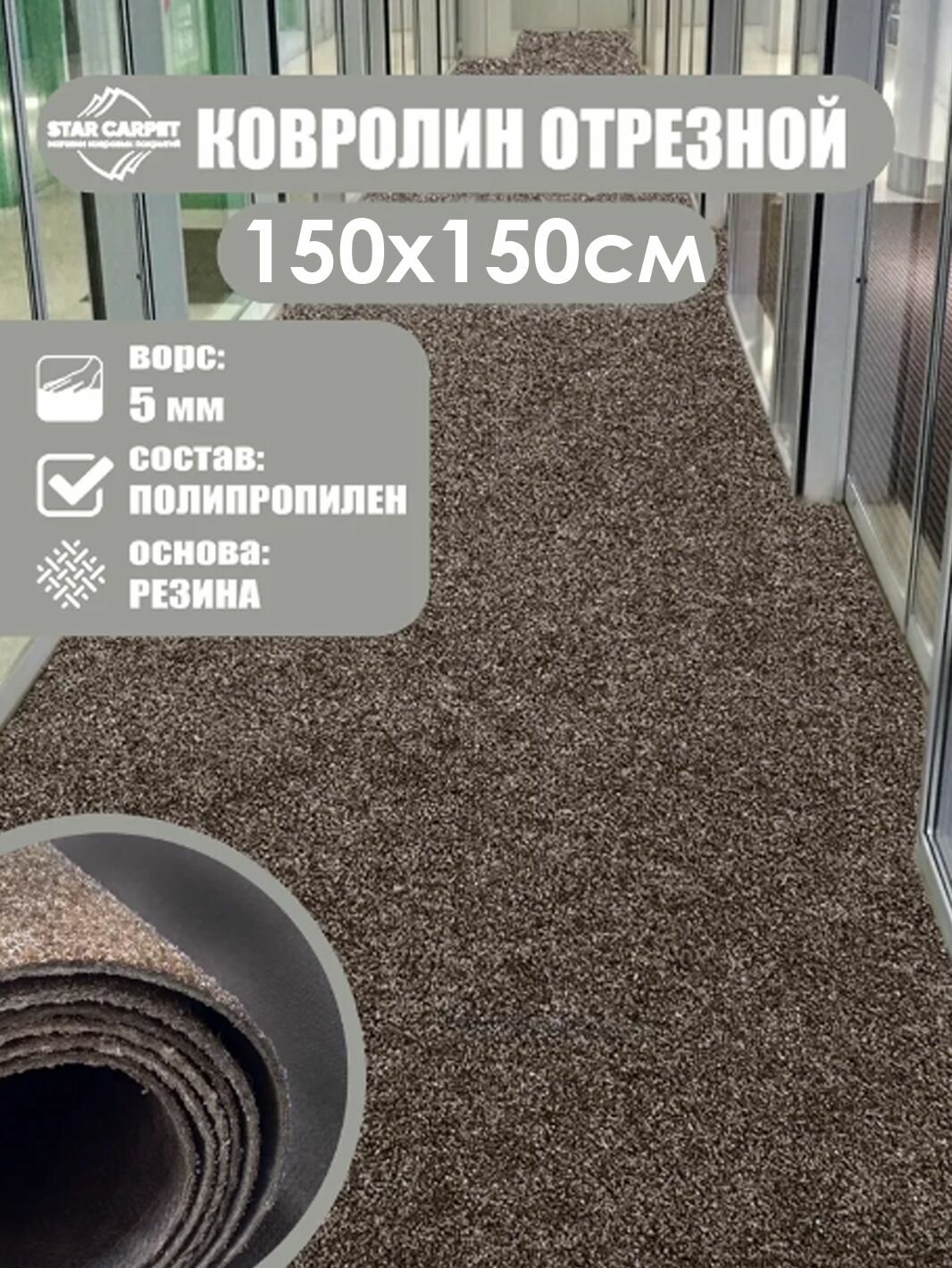 Ковролин на пол метражом 1.5х1,5 м. для офиса и дома, коричневый интересное: