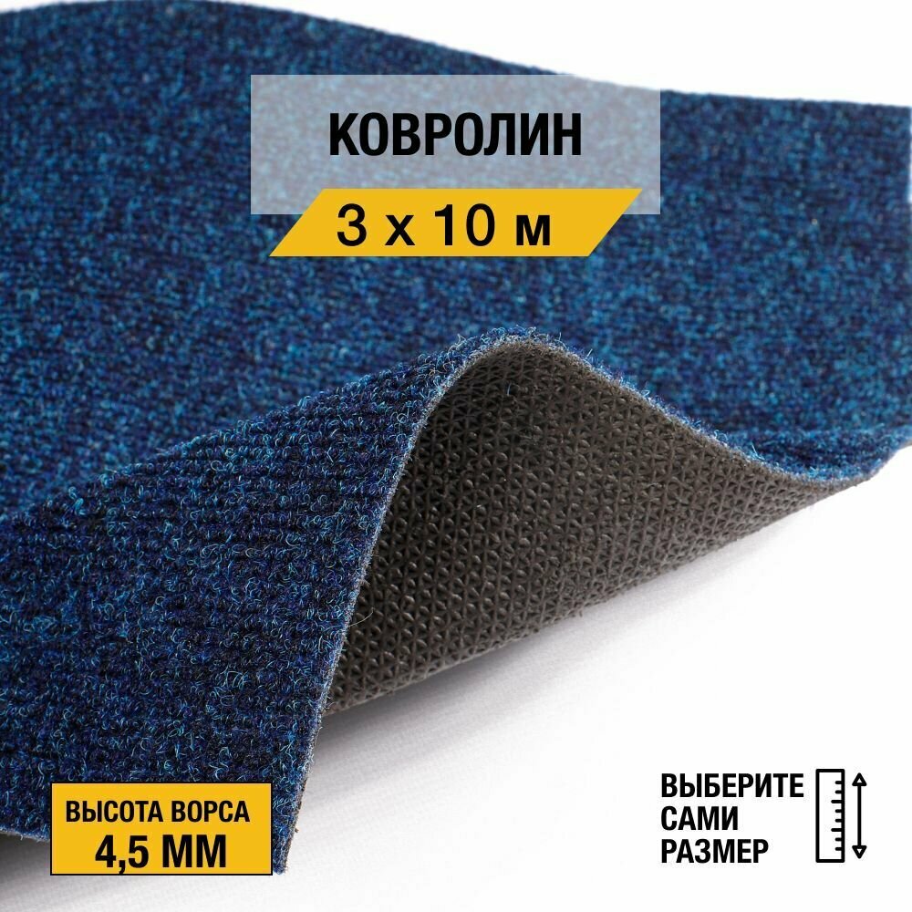 Ковролин, напольное покрытие "Dessert 85" 3х1 м. Ковролин метражом "Betap", коллекция Dessert, иглопробивной, синего цвета с высотой ворса 4,5 мм.