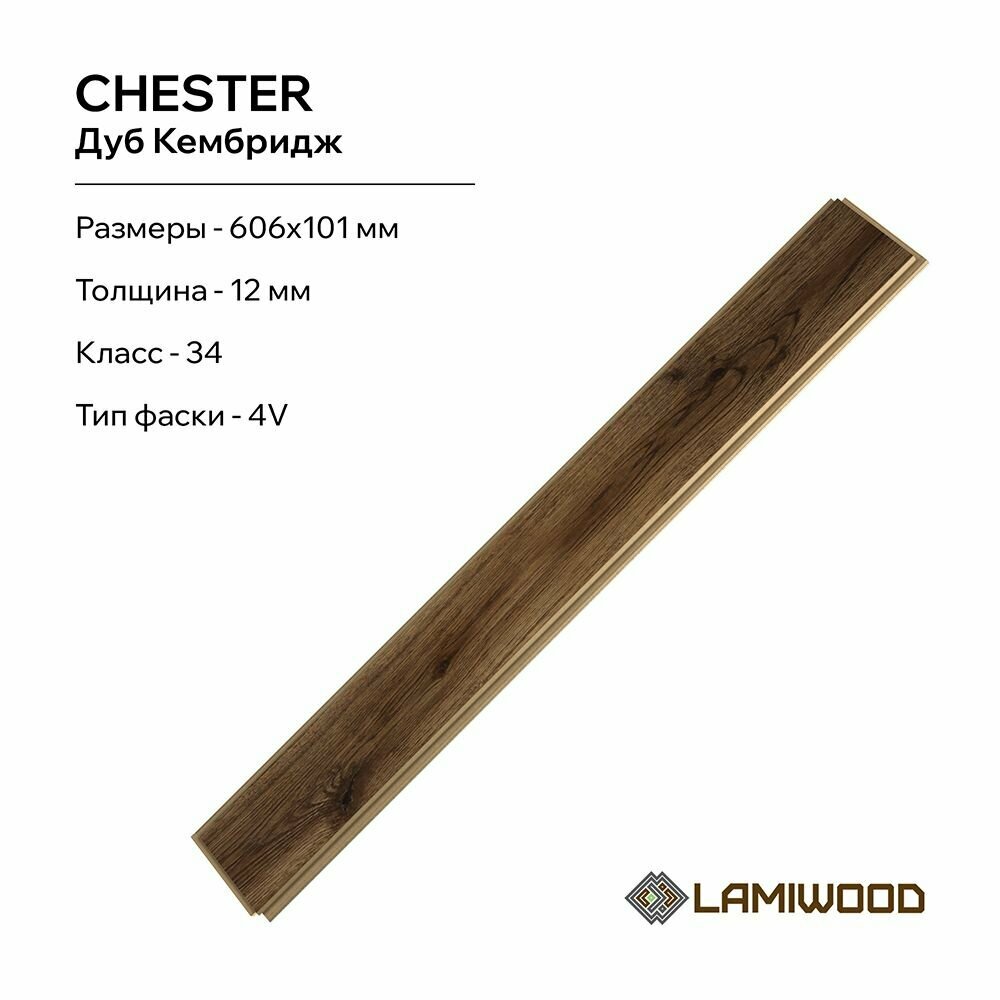 Ламинат Lamiwood Chester 34 класс, 12 мм, 515 Дуб Плимут (SPC)