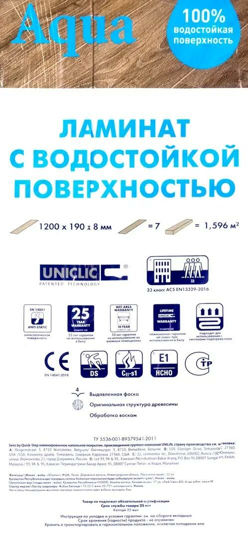 Квик степ ламинат 33 класс Дуб Ханка (упак.1,596 кв.м.) / SENS BY QUICK STEP ламинат 33 класс 1200х190х8мм Дуб Ханка с фаской (упак.7шт=1,596 кв.м.)