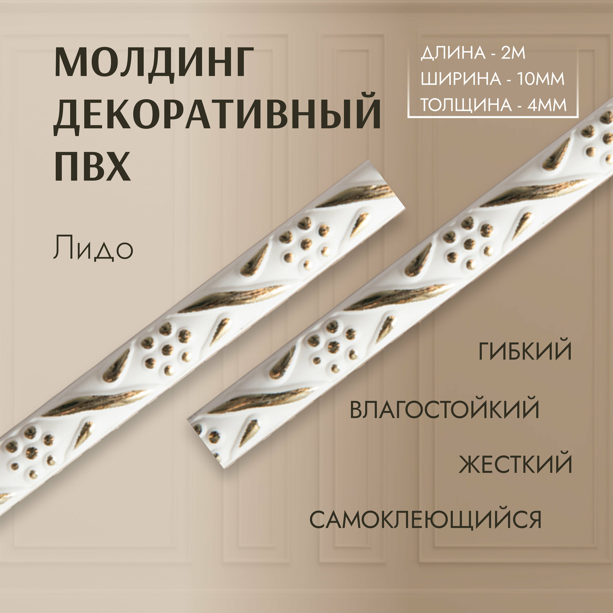 Молдинг для декора стен лидо 4*10 мм (длина 2,0м) самоклеющийся бежевый (1 шт) декор дома и интерьера