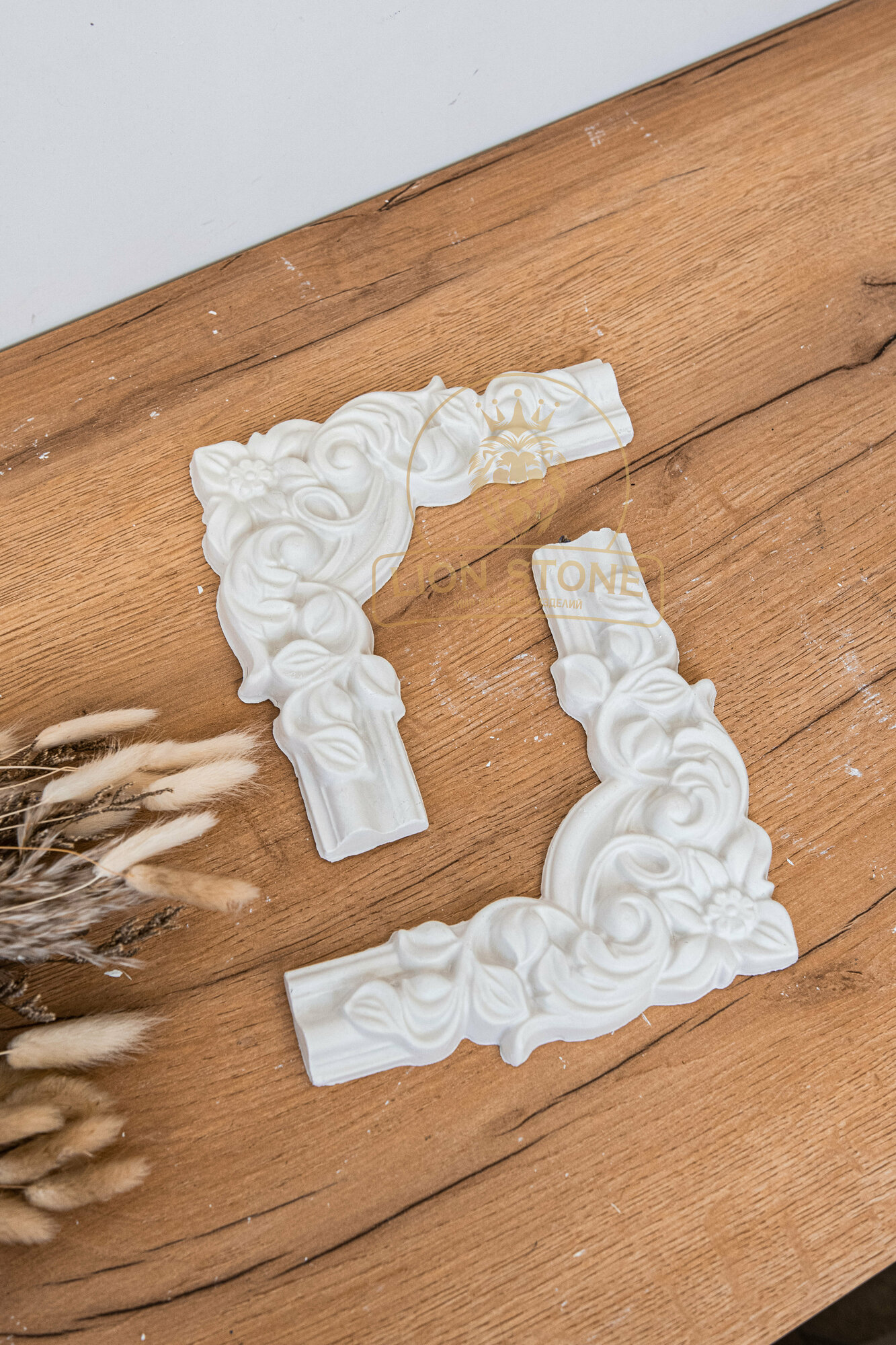 Угловые элементы Lion Stone №2 из гипса, цвет белый, длина 23см, ширина 23см