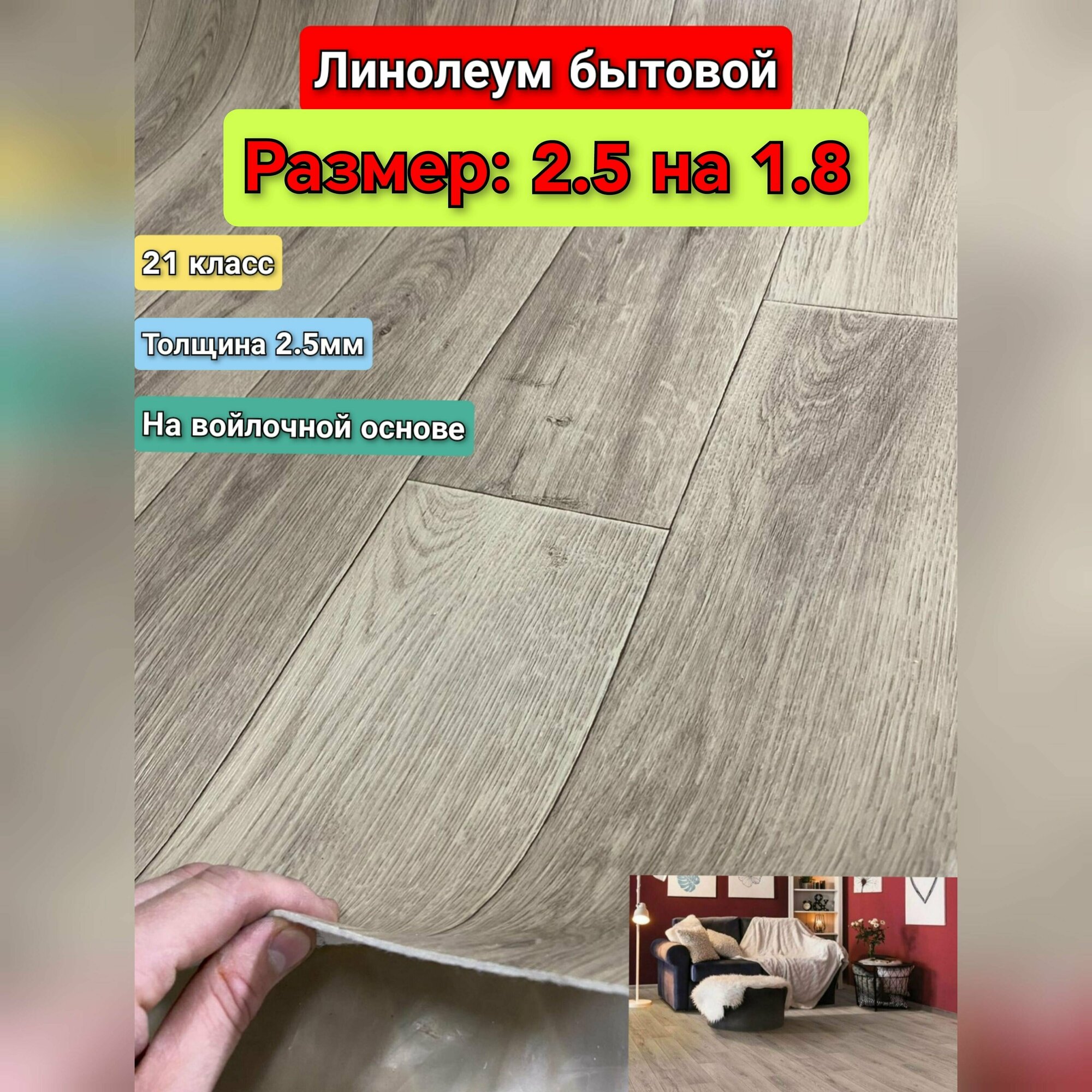 Купить Линолеум бытовой 2.5 на 1.8 АК-3 (21 класс) толщина 2.5 мм,на войлочной основе