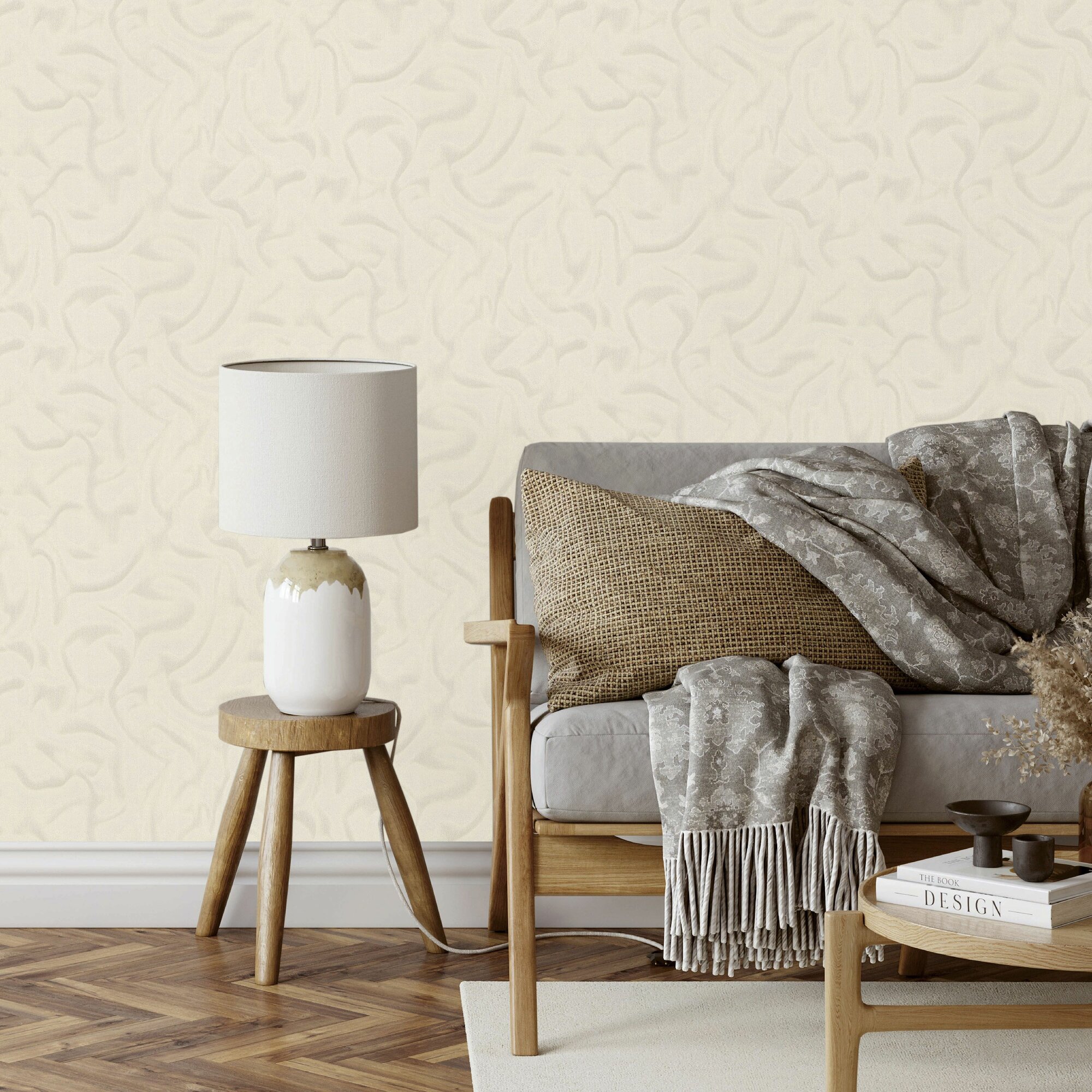 Обои виниловые на флизелине, ткань бежевая, метровые, для гостиной, Шифон интересное: